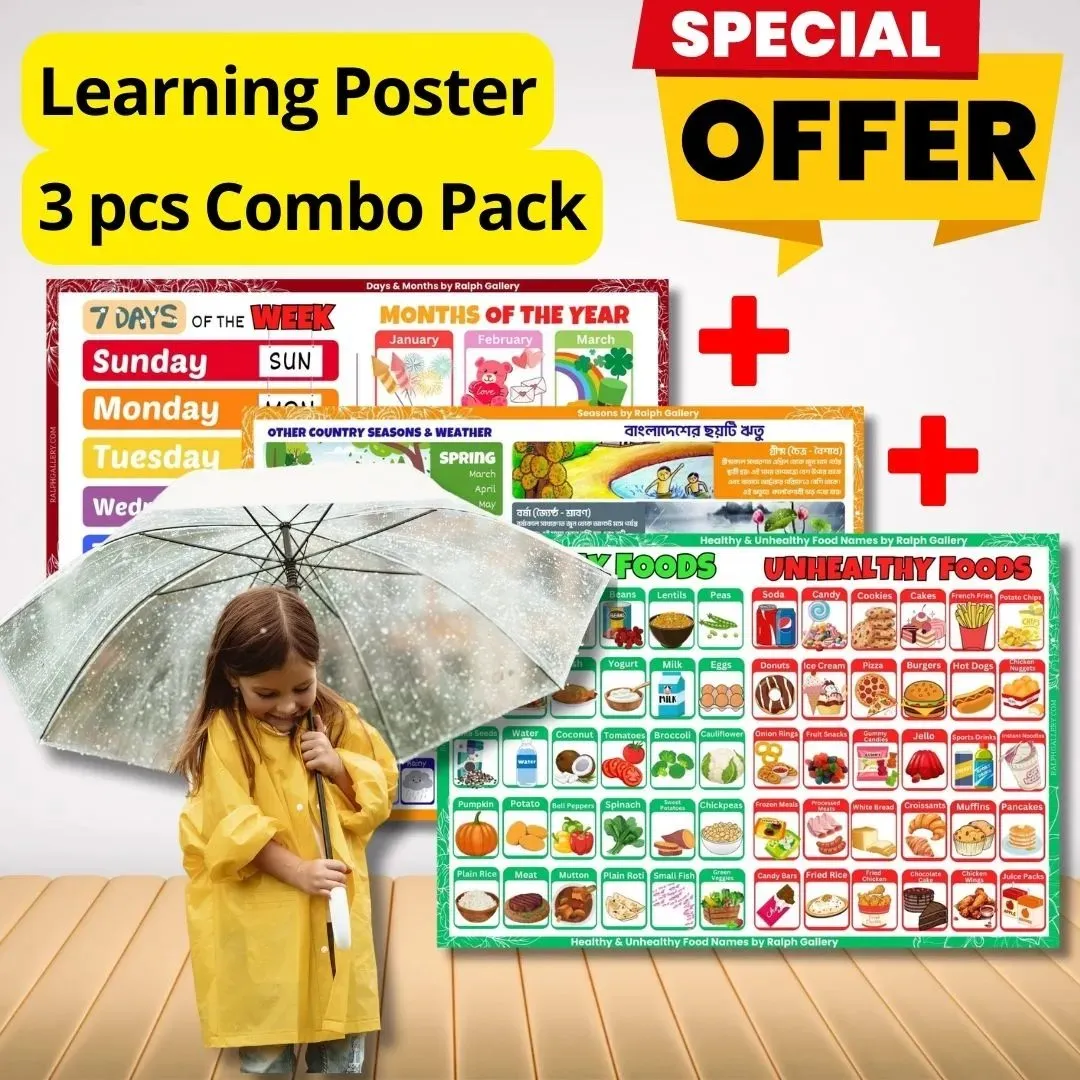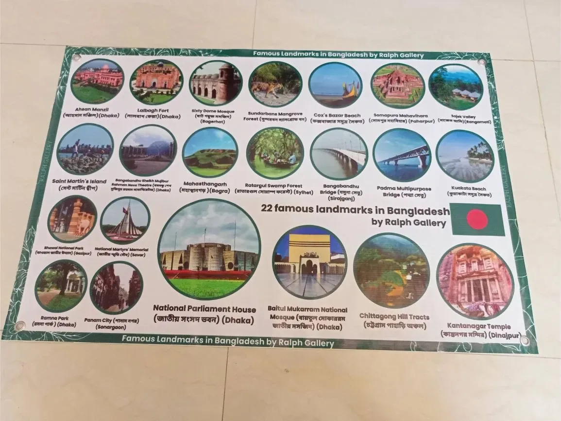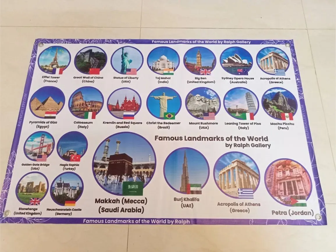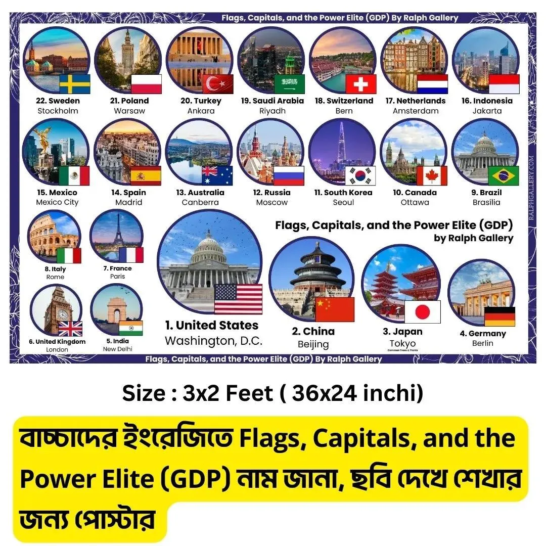 3 pcs Combo Pack Bangladeshi World Landmarks, Capitals জানা, ছবি দেখে শেখা 3×2 Feet Learning Poster Floor Mat