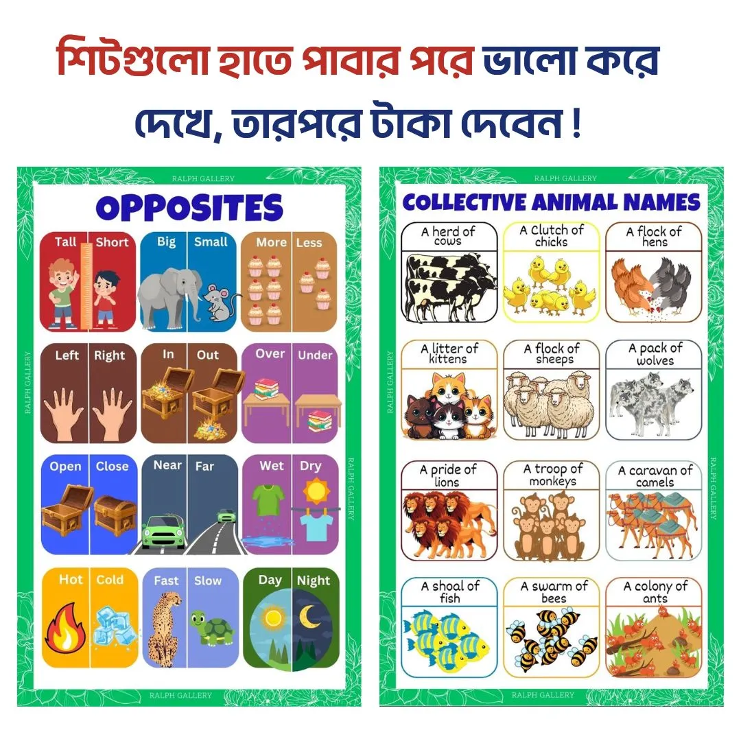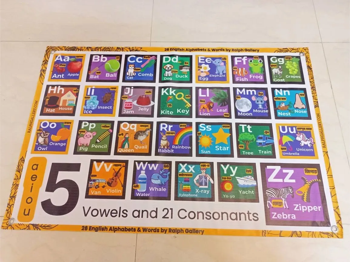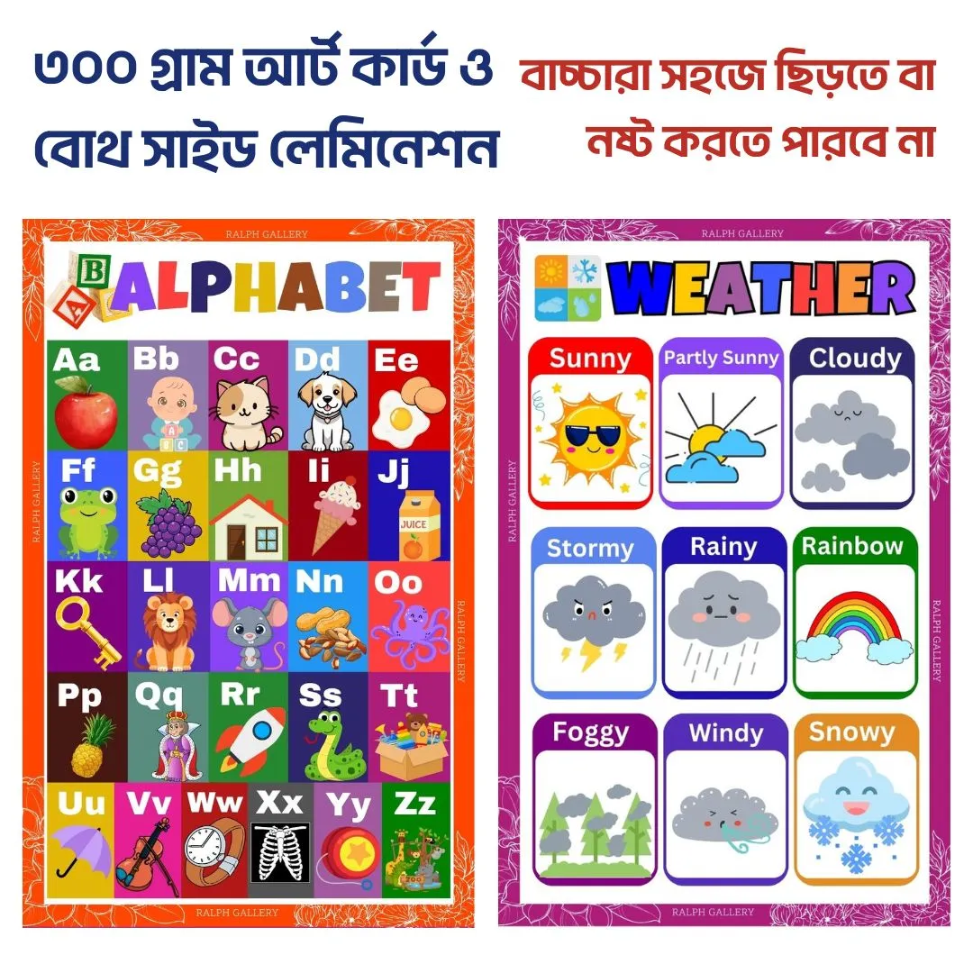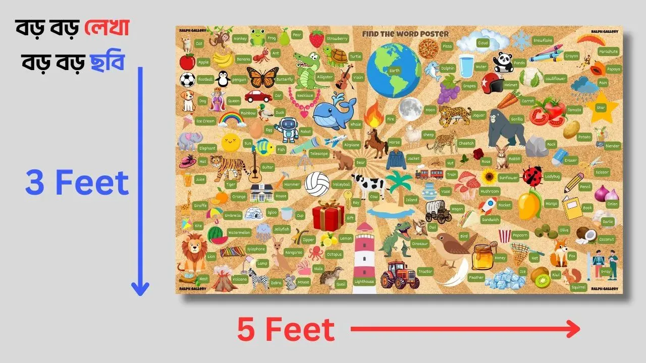 2 pcs Combo Pack Vocabulary (200+ Words) + ABCD alphabets জানা, ছবি দেখে শেখা 3×2 Feet Learning Poster Floor Mat