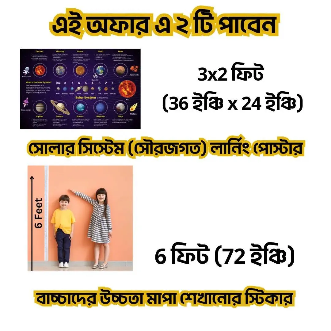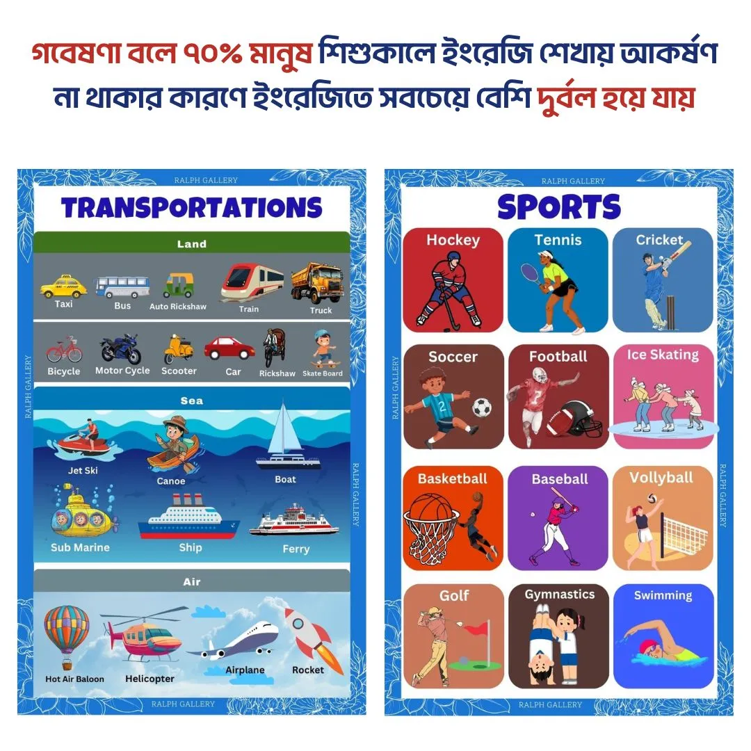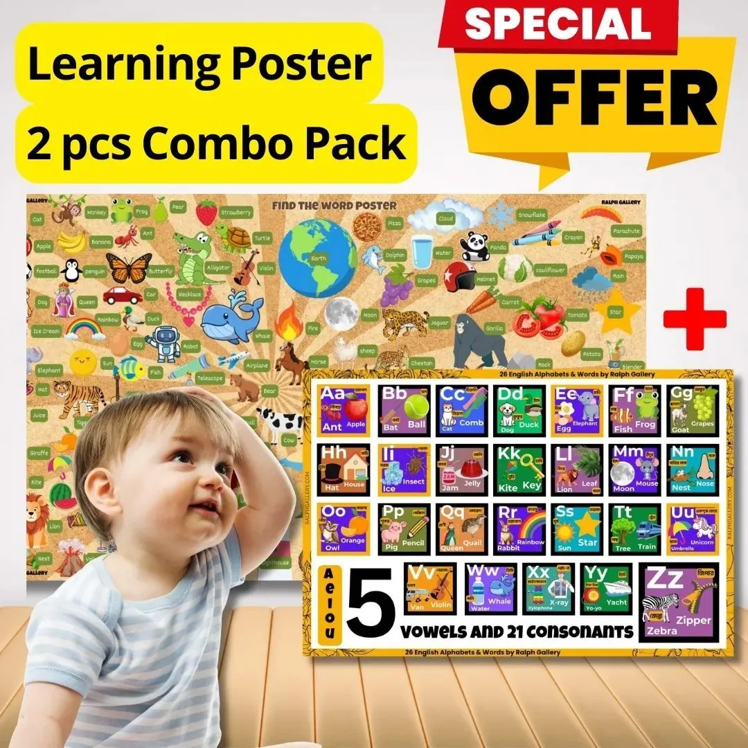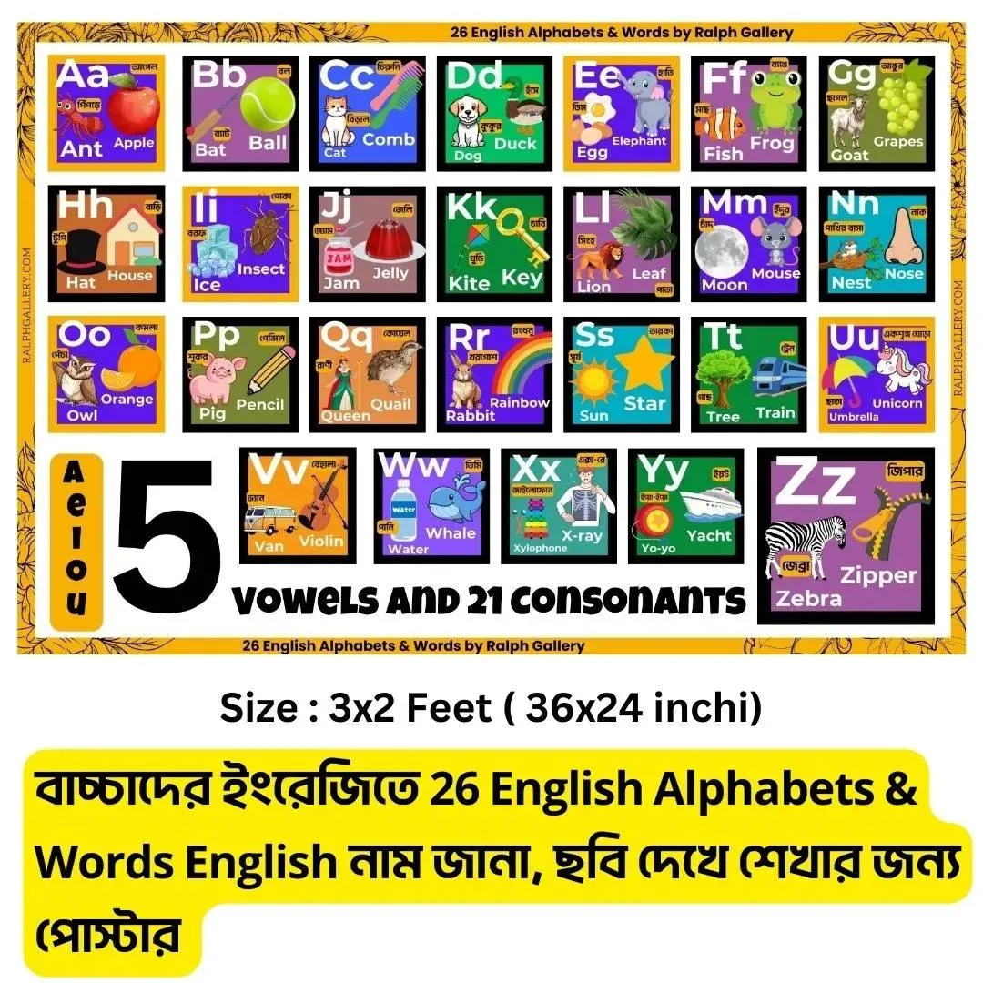 2 pcs Combo Pack Vocabulary (200+ Words) + ABCD alphabets জানা, ছবি দেখে শেখা 3×2 Feet Learning Poster Floor Mat