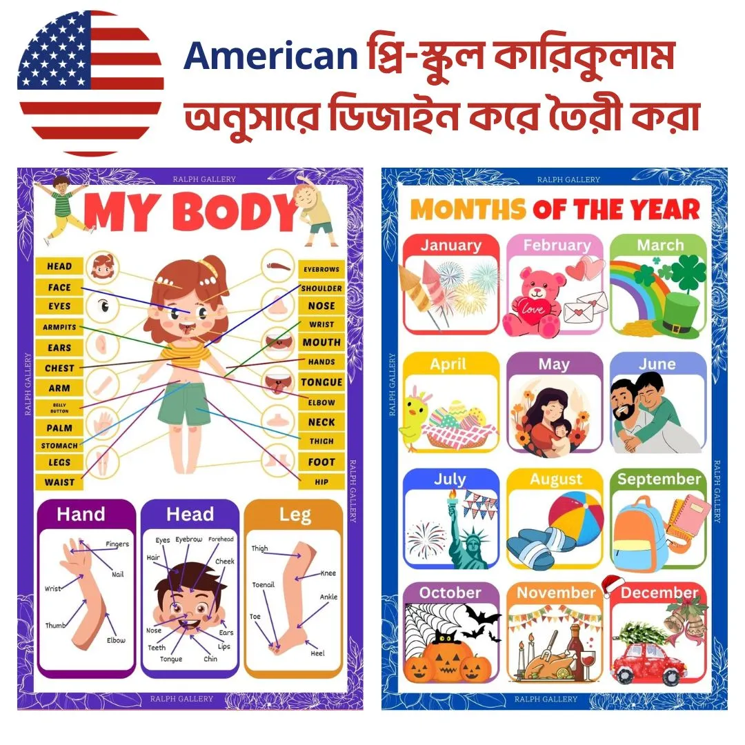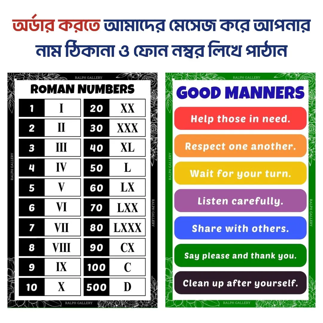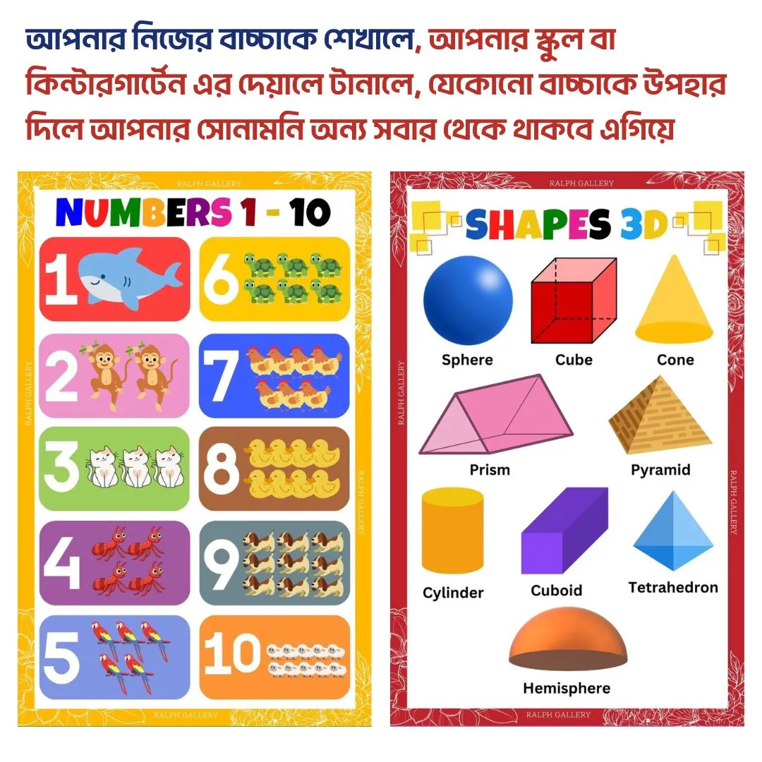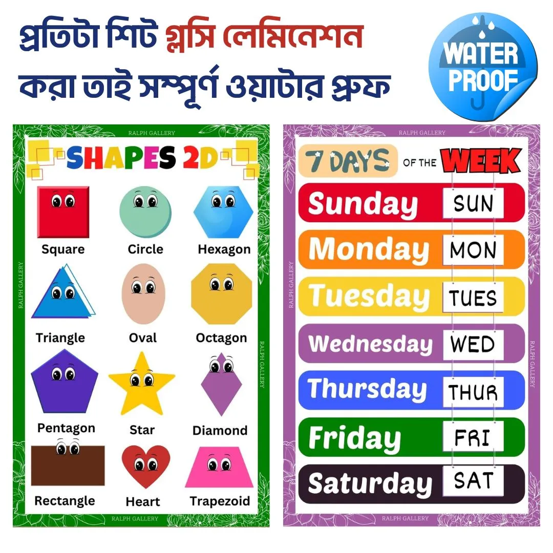 2 pcs Combo Pack Vocabulary (200+ Words) + ABCD alphabets জানা, ছবি দেখে শেখা 3×2 Feet Learning Poster Floor Mat