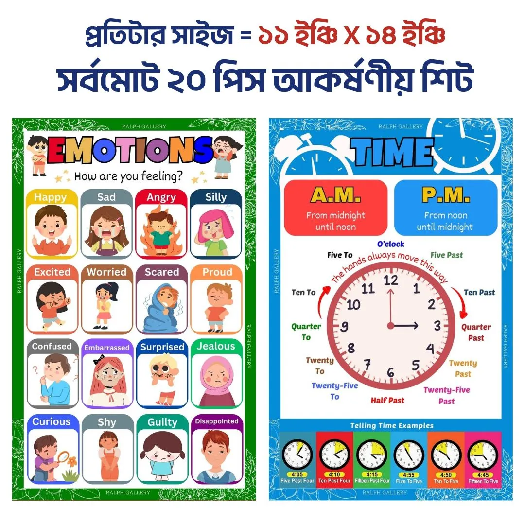 20pcs Pre School English Learning posters for Children (Per Pc Size: 11x14 inchi Small)