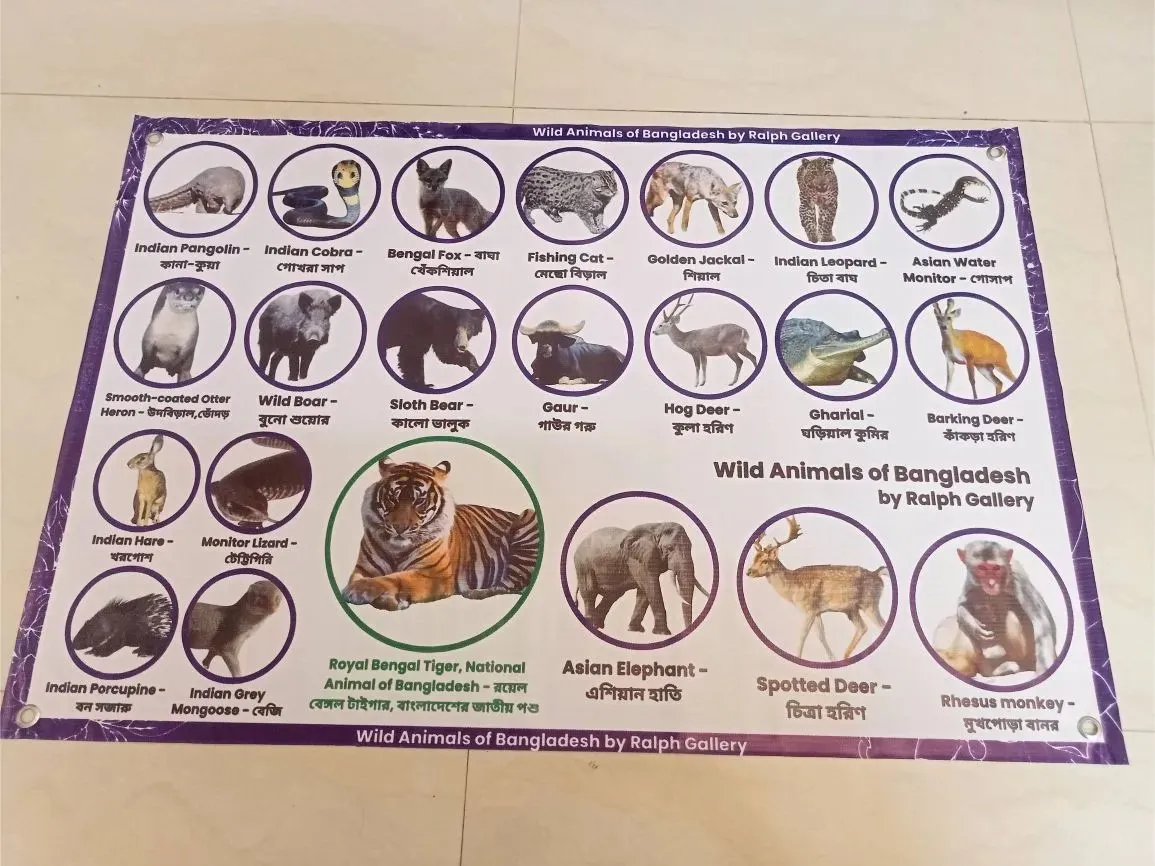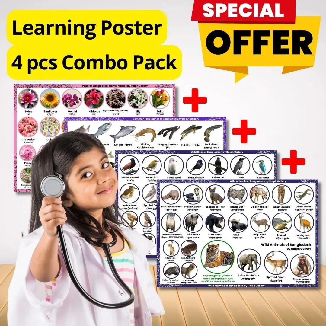 4 pcs Combo Pack Animals, Fishes, Birds, Flowers জানা, ছবি দেখে শেখা 3×2 Feet Learning Poster Floor Mat